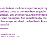 But after the group expanded to include 31 fitness clubs across Florida, New Jersey, and California, the manual feedback processes that were previously in place were becoming increasingly ineffective and time-intensive. For Director of Marketing Shannon Wilber, that meant hours of time spent sorting through customer feedback and manually creating reports.