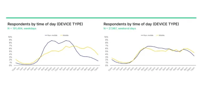 Respondents who fill out surveys during off times (like late afternoons and evenings) are more likely to reply on mobile devices than on their computer. That means that if you catch them during these times, they’re likely to be typing out answers on their phone.